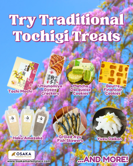 And don’t miss your chance to Try Traditional Tochigi Treats, like Tochi Mochi, Grilled Ayu Fish Skewers, Amazake, Yuzu Daikon, and exclusives like Utsunomiya Gyoza Crackers, Matcha Dacquoise Cookies, and more!